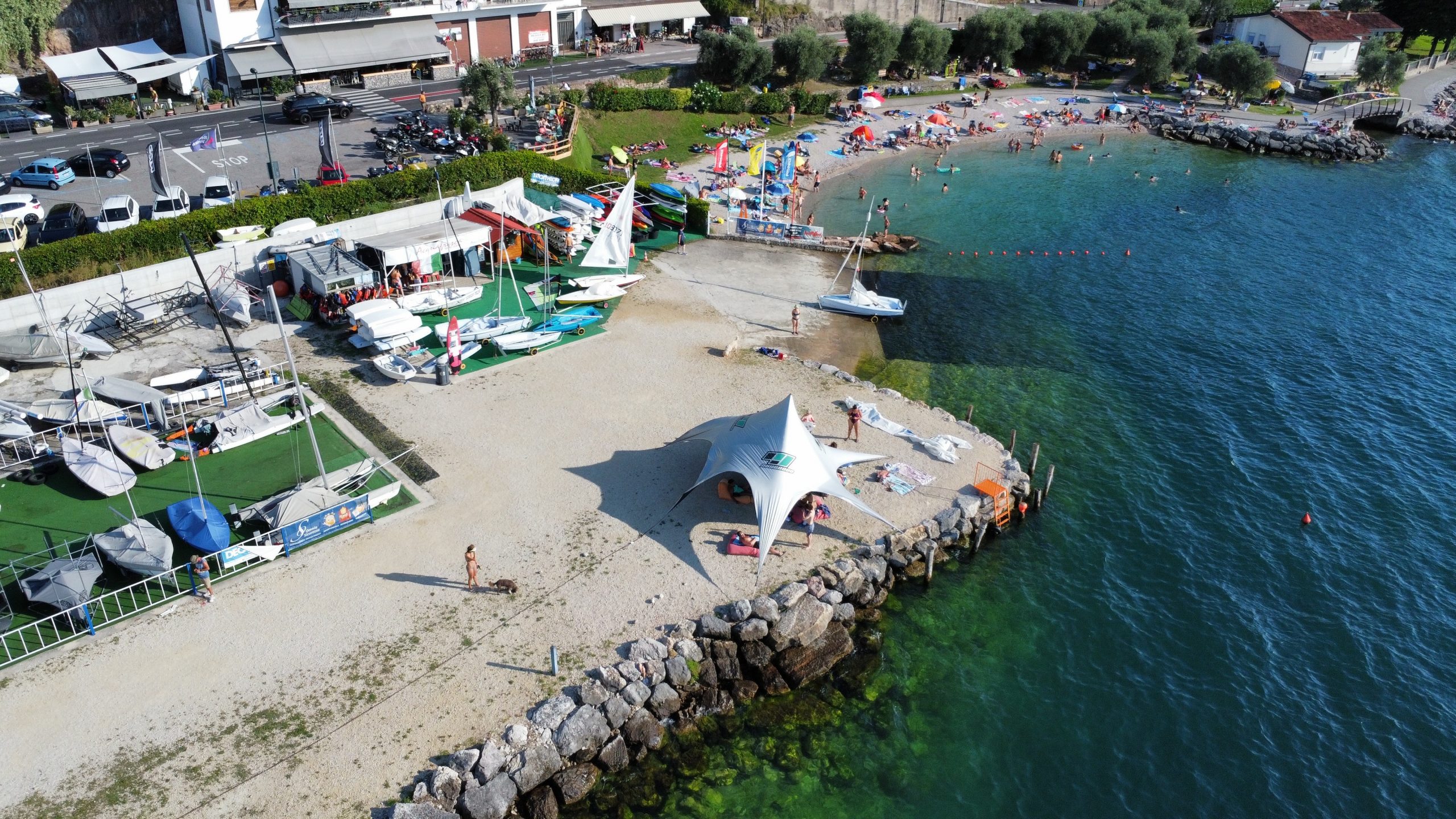La base nautica con scuola vela, noleggio di kayak, SUP, windsurf ed imbarcazioni ad uso dei soci.