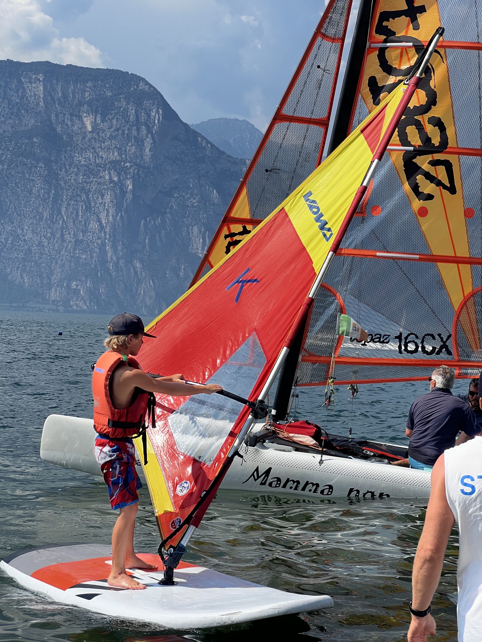 Durante il campus i bambini svolgono lezioni di windsurf con degli istruttori certificati